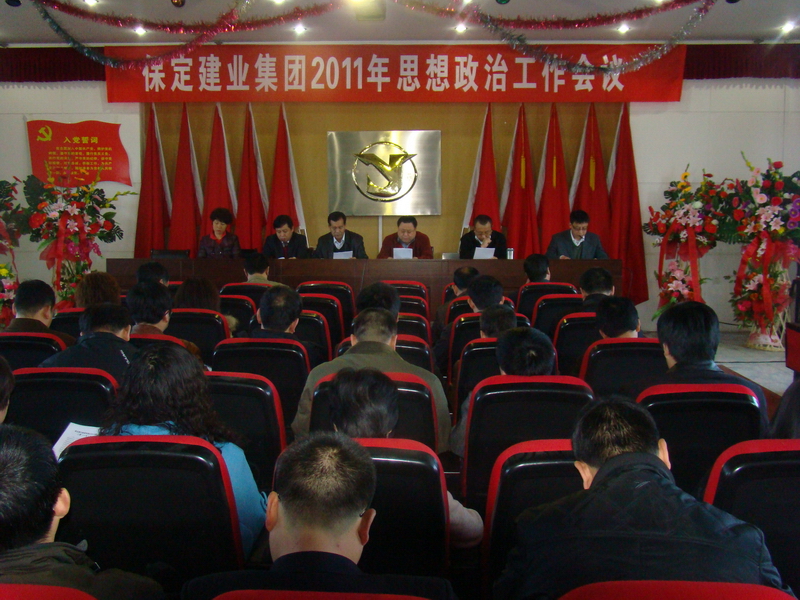 2011年3月8日,保定建業(yè)集團有限公司2011年思想政治工作會議在莊嚴的國歌聲中拉開了序幕,會議由黨委辦公室主任馬亞軍主持,集團各公司黨、政、工、團、婦、武裝、保衛(wèi)負責(zé)人參加會議。